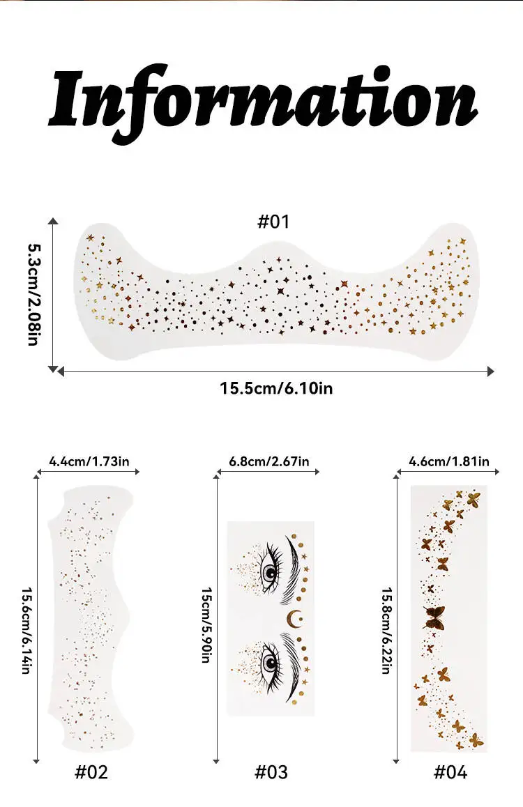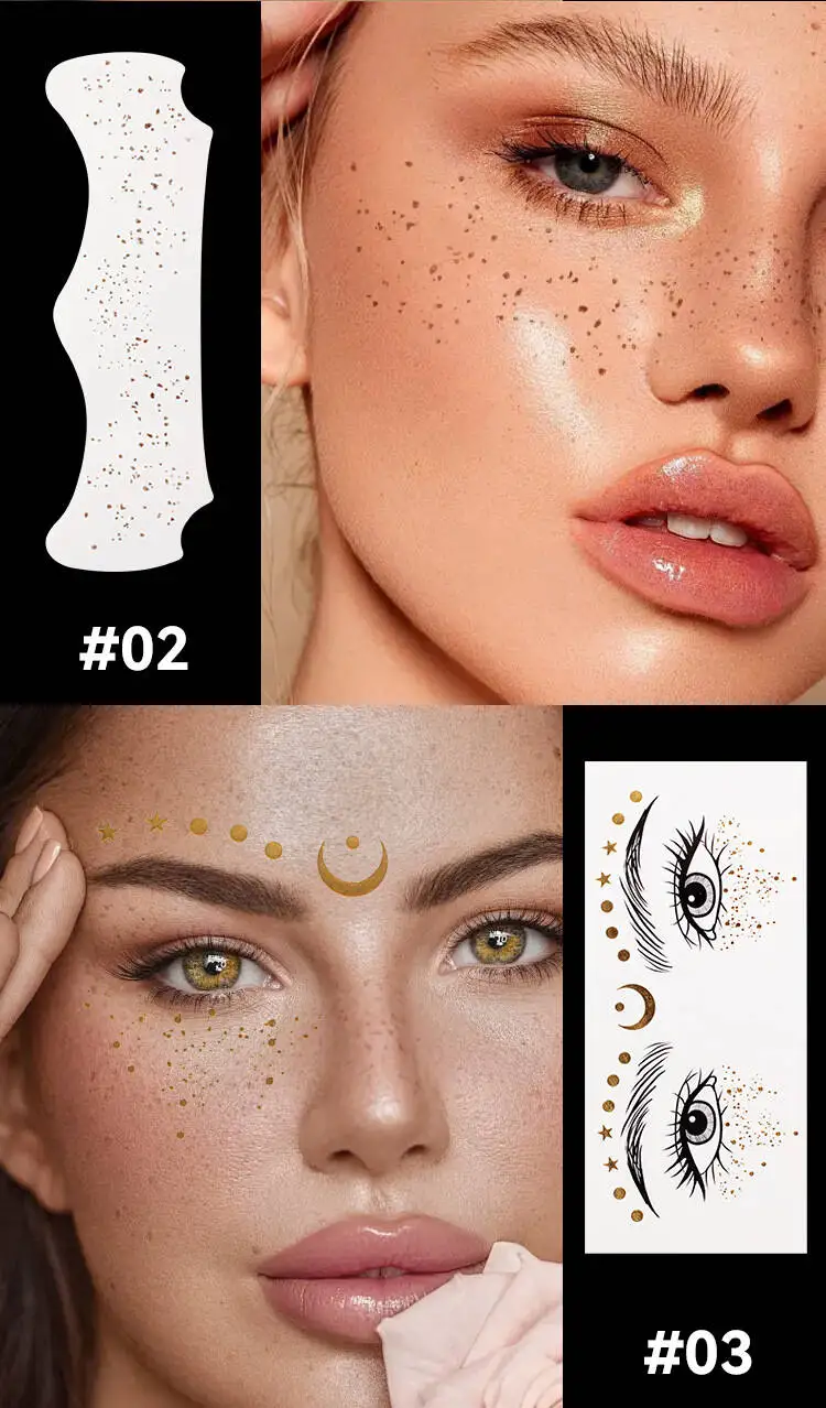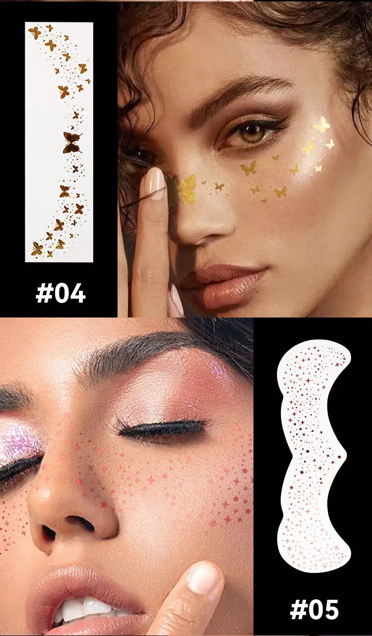 MLSMILE Gold Stamping Tattoo Waterproof Glitter Stars Butterflies Party Stage Performance Freckle Stickers 2025 New